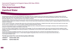 The plan provides a high level overview of the issues (both current and predicted) affecting the condition of the Natura 2000 features on the site(s) and outlines the priority measures required to improve the condition of the features. It does not cover issues where remedial actions are already in place or ongoing management activities which are required for maintenance.