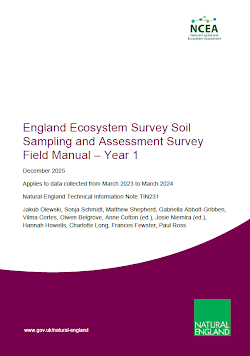 The England Ecosystem Survey (EES) project, part of The Natural Capital and Ecosystem Assessment (NCEA) programme, which is funded by Defra. EES collects soil data for a range of measured variables. This document is for the users of the England Ecosystem Survey (EES) data and those interested in its methods. It describes the field methods used to collect the Year 1 EES Soil Sampling and Assessment Survey data. This includes detailed instructions of the preparation required for each survey, the workflow during a survey, the management of soil samples after collection, and the equipment required.