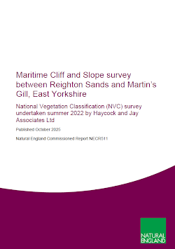Haycock and Jay Associates Ltd was commissioned by Natural England in 2022 to undertake a National Vegetation Classification (NVC) survey of the coastline from Reighton Gap to Martin’s Gill near Filey on the east coast of Yorkshire to investigate the potential for its inclusion within a Site of Special Scientific Interest. The report does not itself make a case for designation, rather it provides an objective record of survey findings to support Natural England’s independent assessment of special interest.